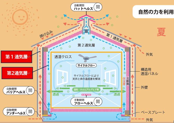 WB ハウスが夏でも快適な理由は、大きく2つあります。