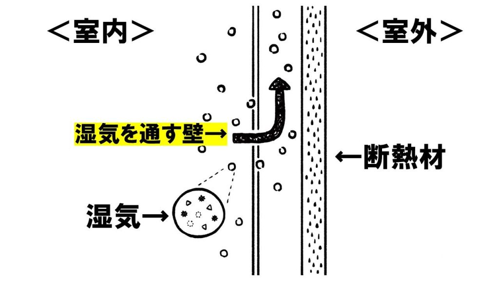2つ目は、室内の余計な湿気を吐き出す、室内壁の作用です。