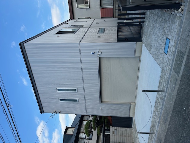 大きな窓は設けず、スリット窓を多用、ガレージの大きな開口部には、電動シャッターを採用しています。